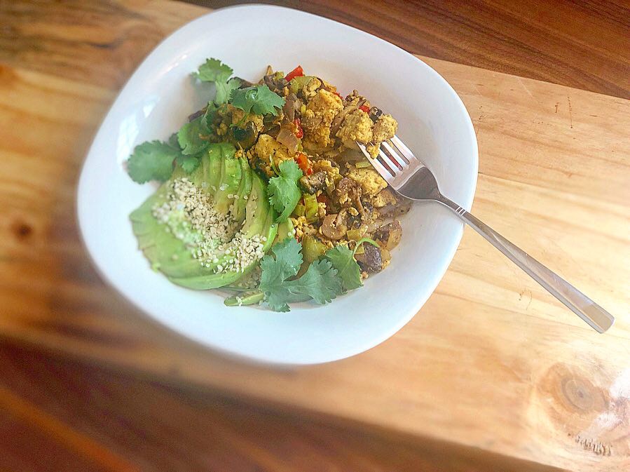 Vegan tofu and veggie breakfast scramble